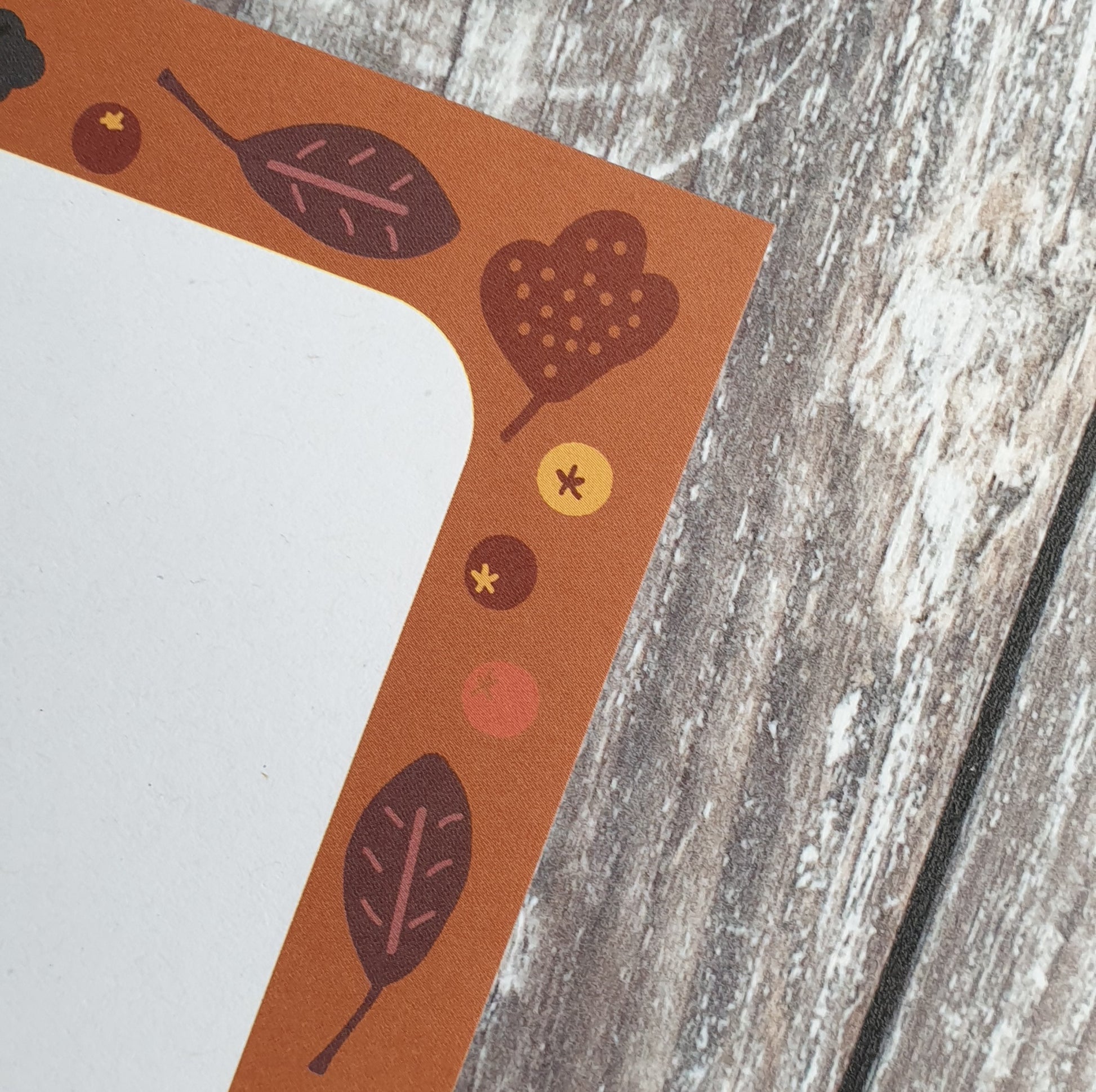 4 Autumn themed designs perfect for sending to accompany an autumn gift or treat.