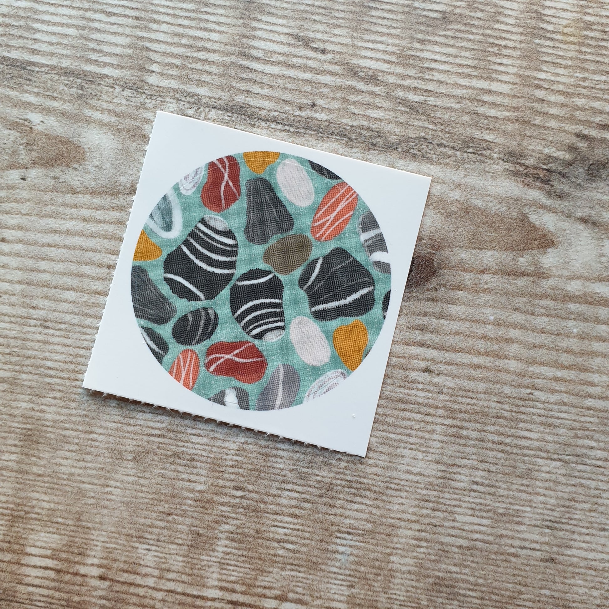 A sticker design inspired by hours spent combing beaches looking for beautifully patterned or shaped pebbles.