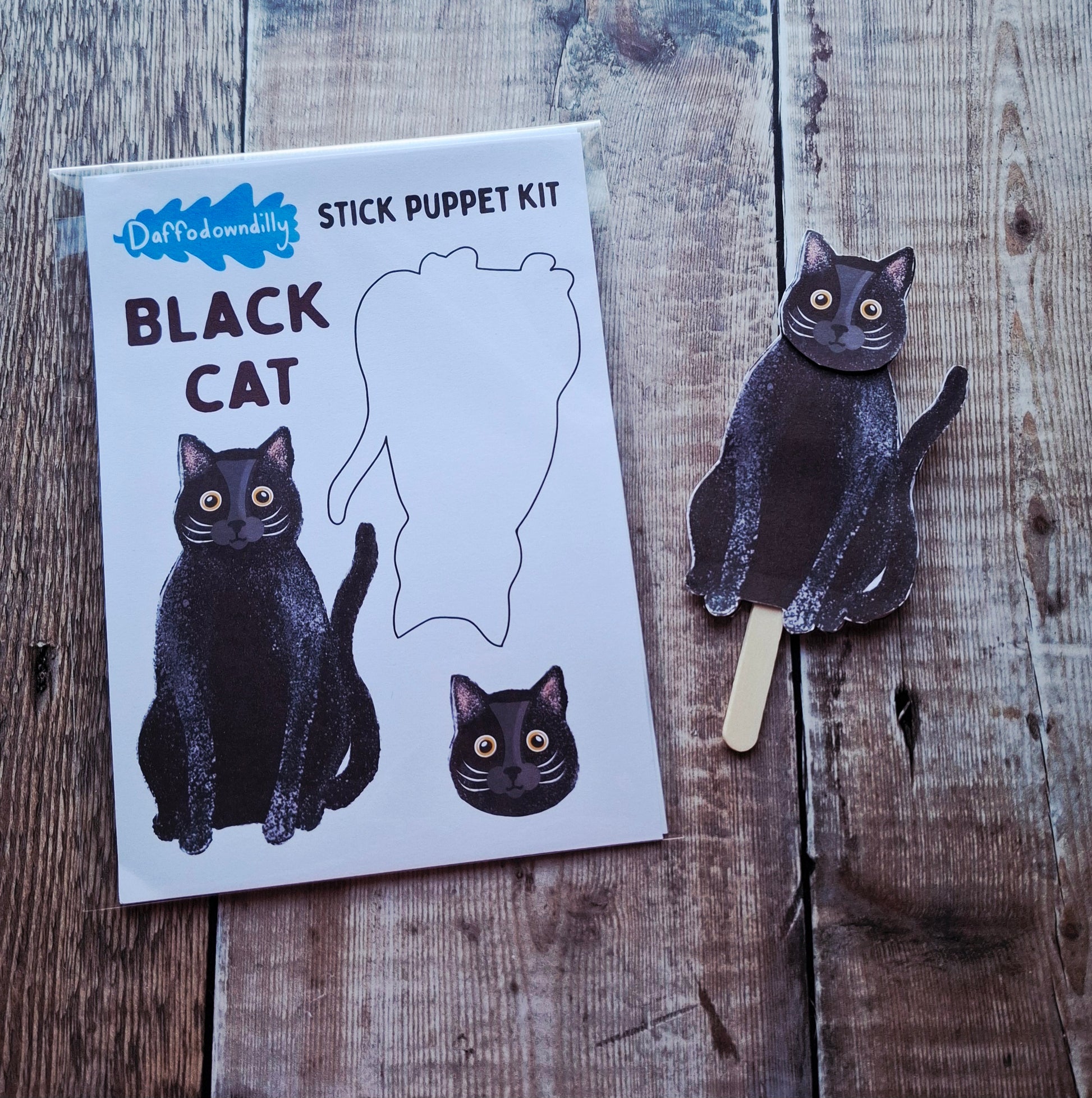This cute mini kit makes an black cat stick puppet. The stick puppet has a 3D effect created by layering the printed card pieces and uses foam pads instead of glue. This makes it perfect for quick makes or times when you need to be low mess.