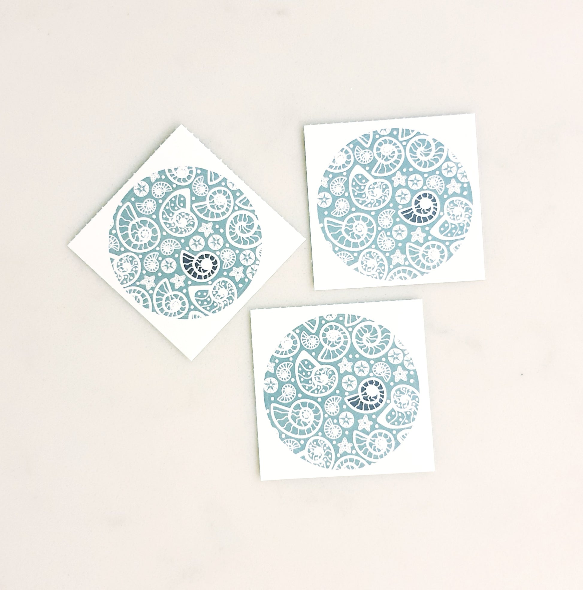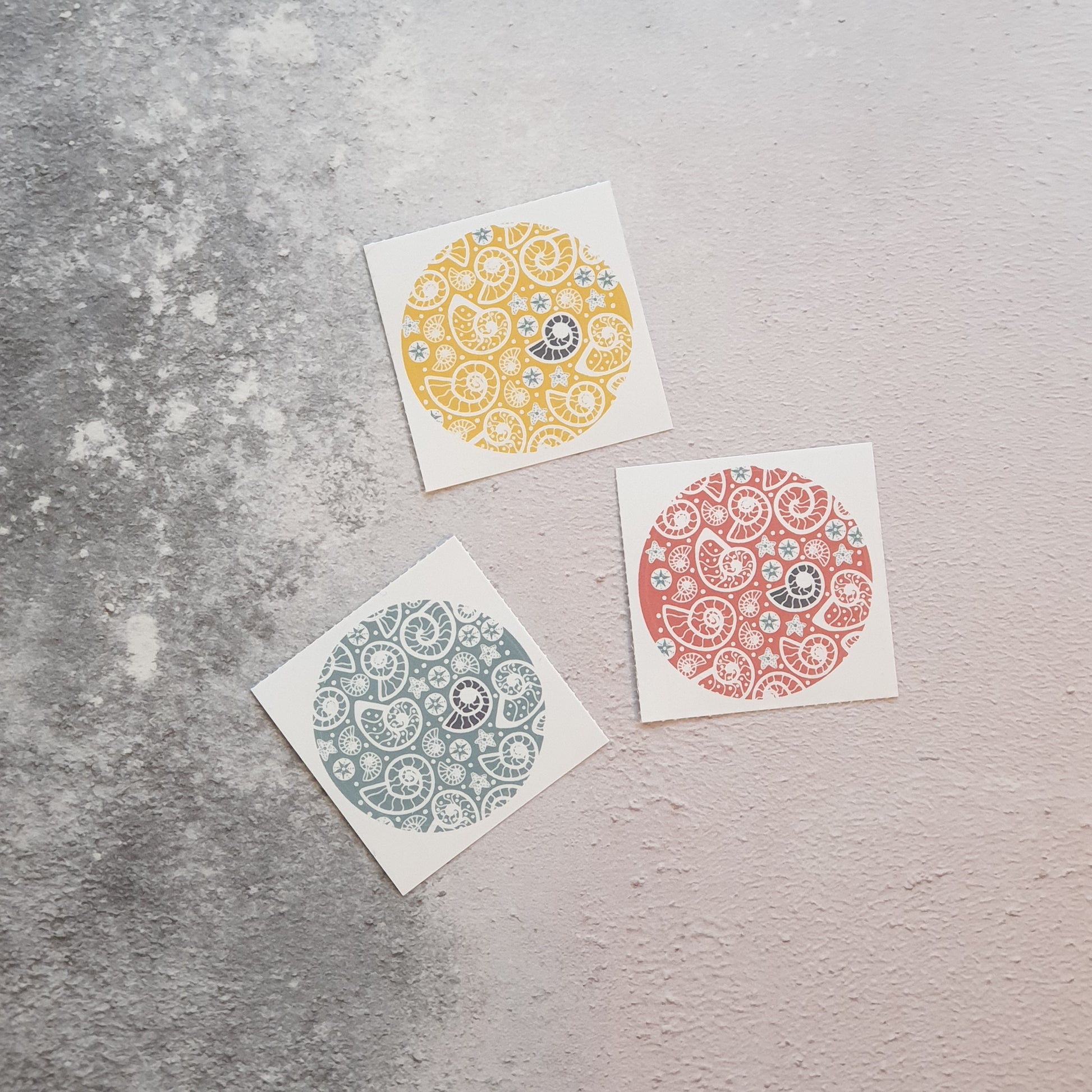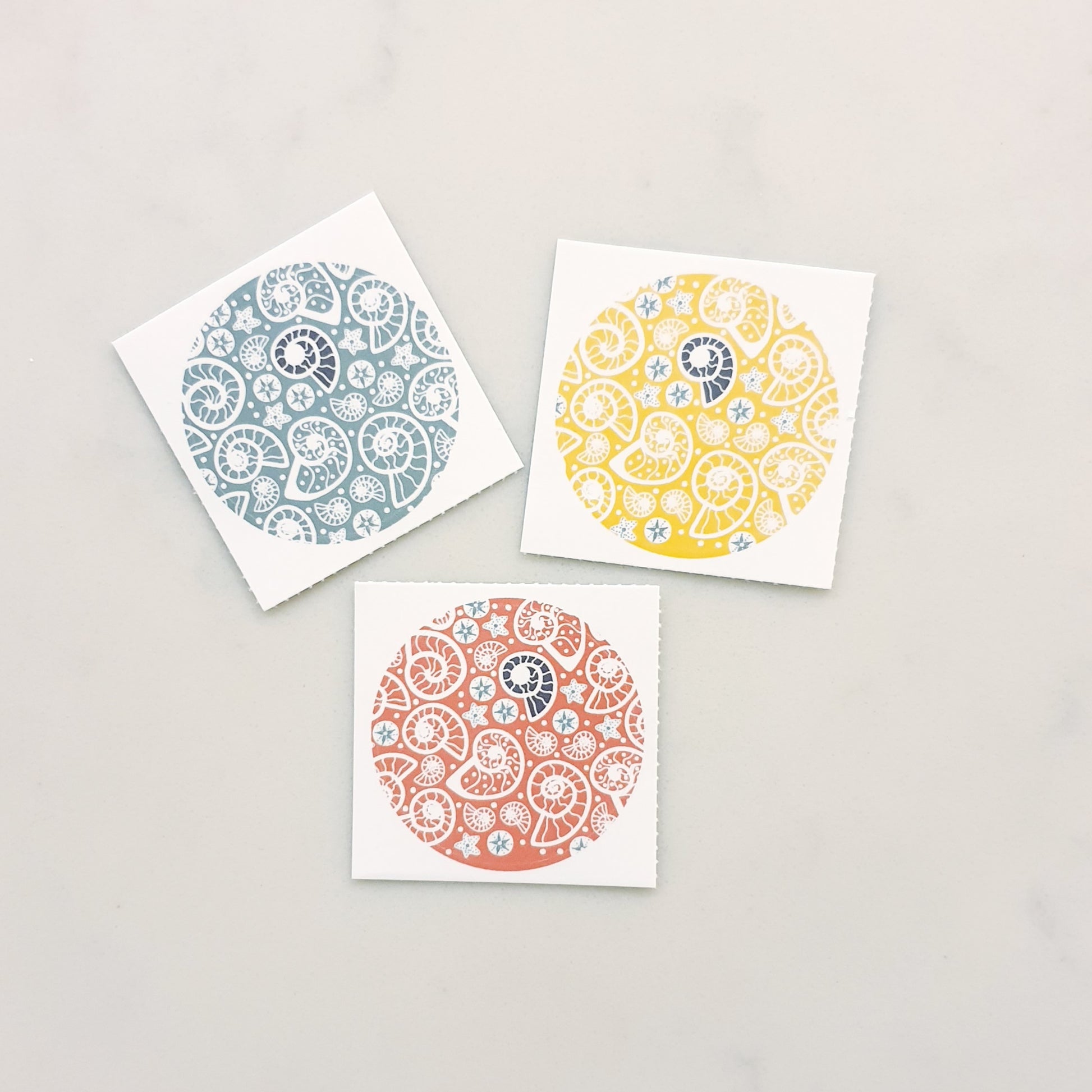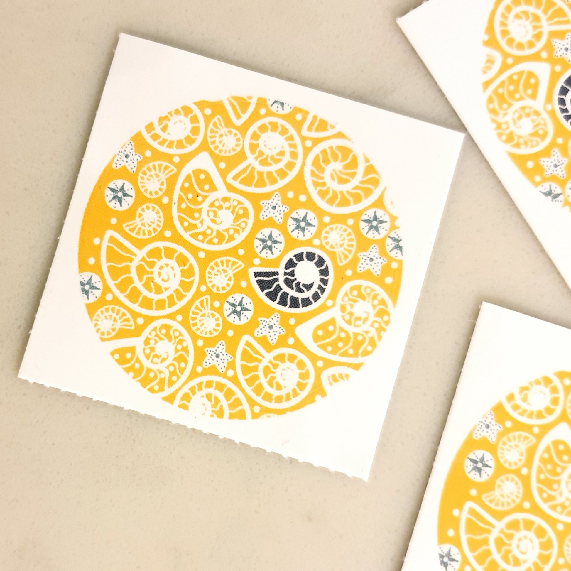 Inspired by fossiling on Charmouth Beach! Filled with a mix of ammonites, crinoid pieces and sea urchins. Available in three colours.