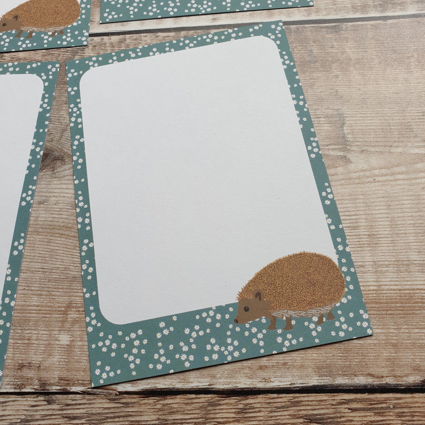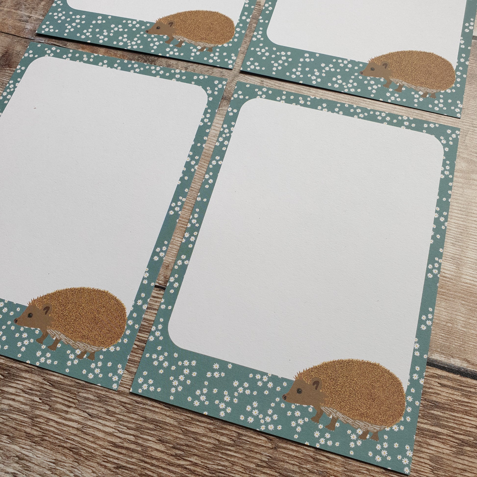 This set features a hedgehog surrounded by daisies with a calming blue background.