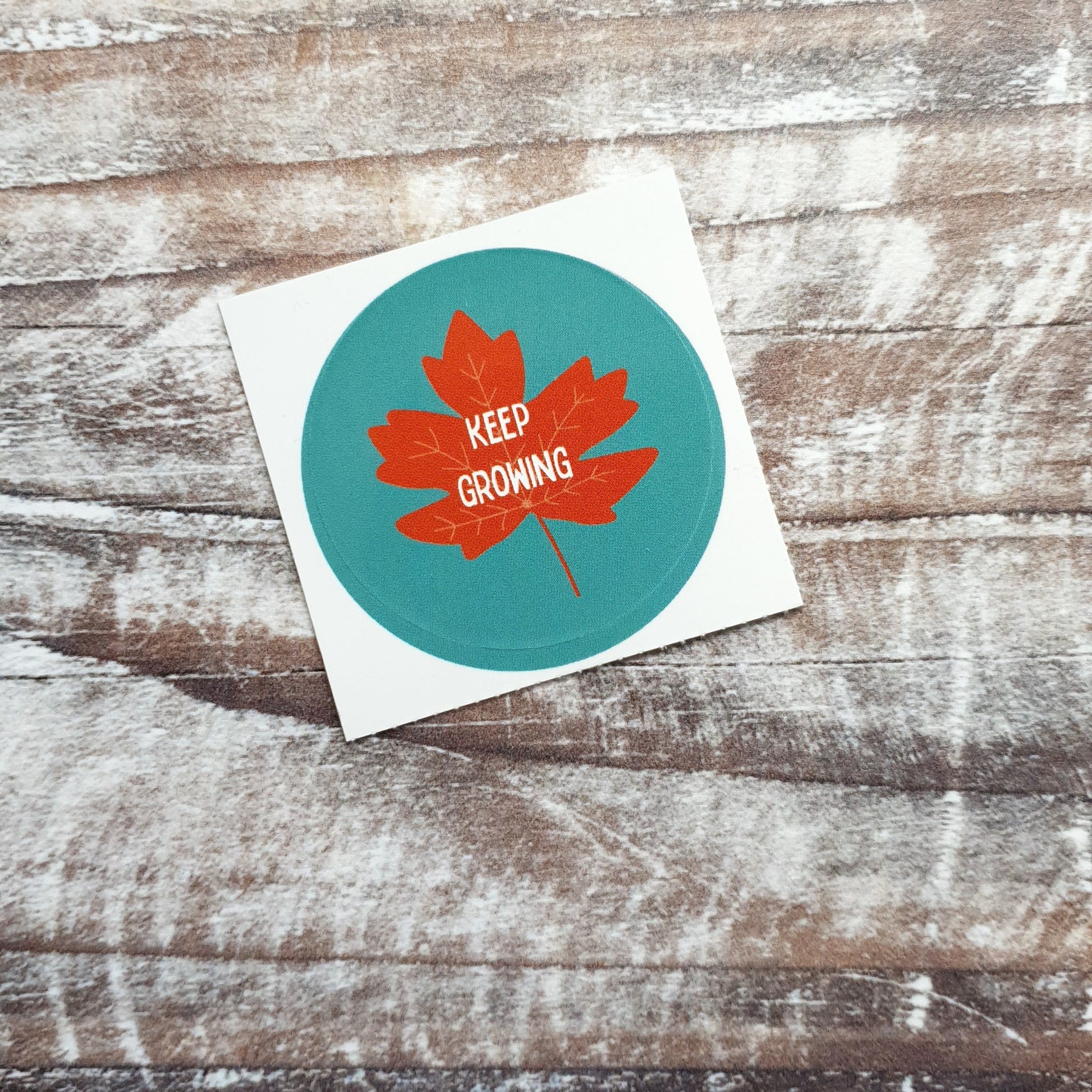 This design is called Keep Growing and features a field maple leaf with a positive message of hope and growth.
