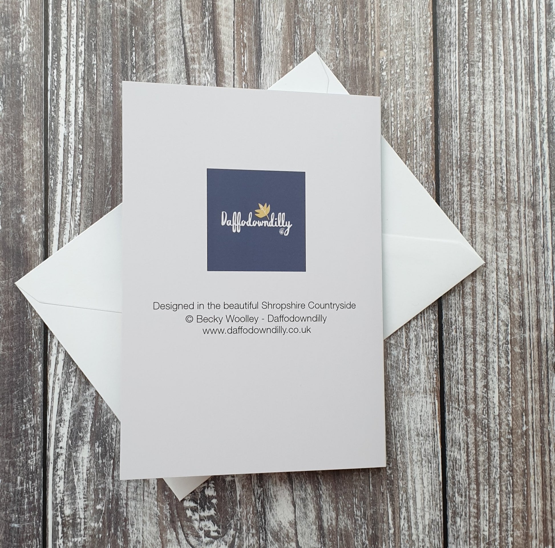 This card is printed in the UK on silk paper with 340gsm paper-weight and comes complete with its own white envelope. The card is blank on the inside for your own very special message.