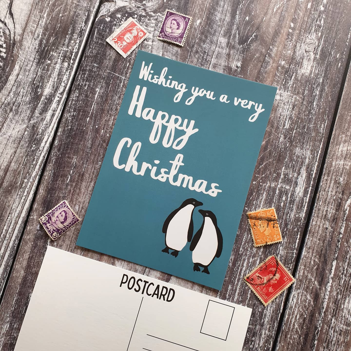 A pair of adorable Adelie Penguins wish a wish for a Happy Christmas. Perfect for sending with a lovely note to friends and family.
