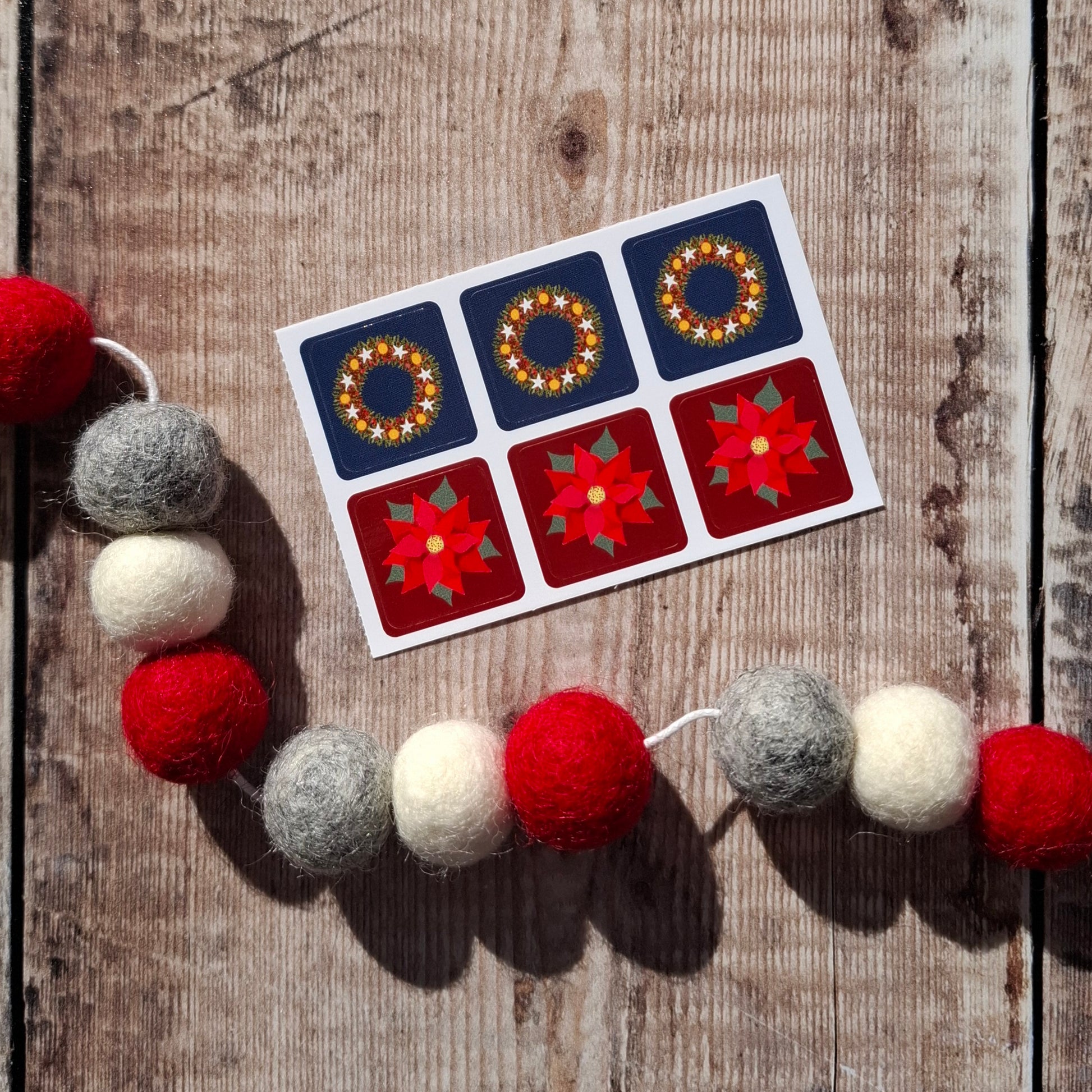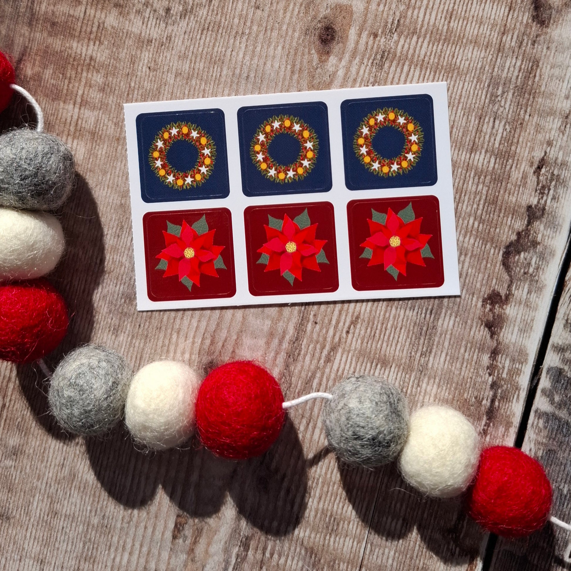 Poinsettia and Christmas Wreath Envelope Stickers - Set of 6