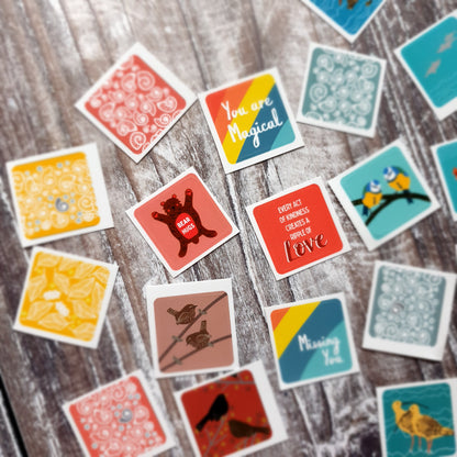 Waterbirds Envelope Sticker Sheets - Each set contains six 22mm x 22mm (stamp sized) square mini stickers, the perfect size to stick on or seal greeting card envelopes to make them extra special.
